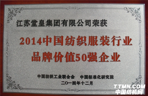 堂皇集团荣膺2014年品牌价值50强