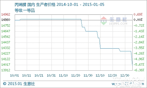根据生意社价格监测显示,近期国内丙烯腈市场延续弱势。厂家月初挂牌相继公布,中石化华东销售公司丙烯腈挂牌价格14200元/吨,中石化华北销售公司丙烯腈挂牌14200元/吨,山东科鲁尔化学丙烯腈月初挂牌14000元/吨,合约客户执行结算。 成本继续走弱,经过前端时间的大涨之后,目前丙烯价格仍回归低位;下游腈纶市场1月挂牌价较去年12月结算价大幅下调1000元/吨,主流工厂继续限产操作,行业库存水平维持相对正常水平,下游延续按需跟进。 生意社分析师认为目前丙烯腈市场弱势不改,厂家报价跟跌,另外下游需求面缺乏利好,且上游成本面利空,预计近期丙烯腈维持弱势。