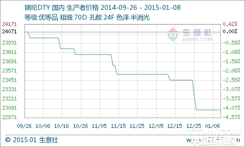 据生意社锦纶价格监测,受原料市场及下游影响,最近三个月锦纶一直维持下跌态势。目前下游市场走货不畅,切片方面价格在盘整阶段,厂家开工多在低位,厂家微利经营。