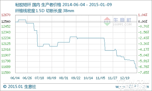 据生意社监测数据显示,国内粘胶短纤价格普遍下调100-200元/吨,其中1.5D*38mm粘胶短纤价格为11671元/吨左右,较上周11814元/吨下调1.21%。二,市场分析