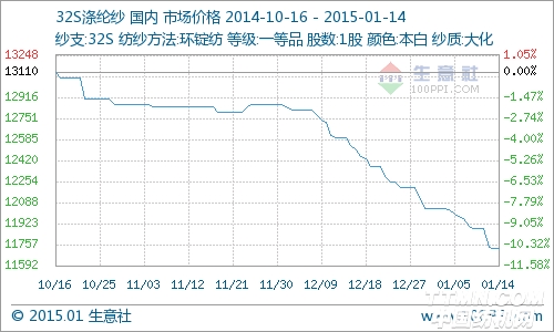1月14日,涤纶短纤下游心态继续恶化,买盘意愿低迷。今日,江浙1.4D直纺涤短市场主流报6800-6900元/吨出厂;山东1.4直纺涤短主流报6900-7000元/吨送到;福建1.4D直纺涤短市场主流报6850-6900元/吨短送。市场观望氛围较浓,成交依旧商谈为主。受涤短价跌影响,下游纯涤纱价格继续下行,市场中心价格在11730元/吨左右。
