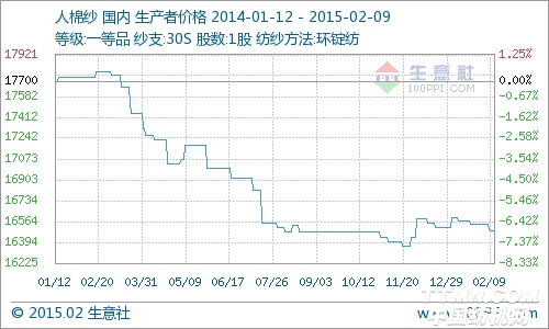 据生意社粘胶短纤价格监测:近期粘胶短纤市场因新单收款滞后,新单商谈意向较低。预测后市将持续弱势。 2015年1月,大宗商品数据商——生意社发布的中国大宗商品供需指数(BCI)为-0.64,均涨幅为-4.05%,反映该月制造业经济较上月呈收缩状态,经济下行风险加大。 2月9日国内粘胶短纤市场交易气氛低迷,春节将至,江浙一带小纱厂本周逐步收尾停车,大部分纱厂将于下周集中放假。年末厂家以回笼货款为主,普遍表示今年收款难度较往年大,下游资金较紧。新单方面基本接近尾声,市场节日气氛渐浓。粘胶短纤市场价格平稳,今日总体交投气氛平淡,下游节前备货接近位置。市场价格仍维持平稳,目前1.5D*38mm的粘胶短纤市场中心价11300元/吨。