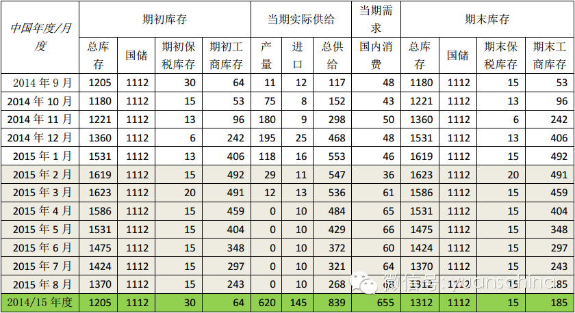 根据新疆棉花加工进度,元斯预计2014/2015年度中国进口外棉总量145万吨,保税库库存下降15万吨,在不抛售国储库存的情况下,工业库存增加124万吨至188万吨。