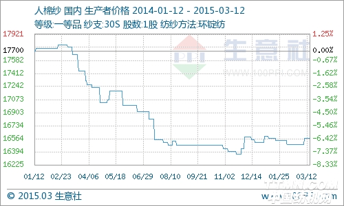 生意社:人棉纱市场需求平稳 价格难以回升(3.8-3.13)