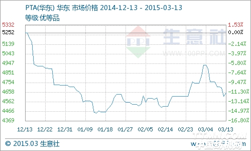 本周PTA价格重心继续下移,周跌幅1.26%。目前国内PTA维持73%高位的开工负荷,较周初略有回升0.5%左右。下周开始有部分装置存在检修计划,如天津石化、洛阳石化,但该些装置外销有限,且市场占有度相对较低,PTA开工率仍未有大幅下降预期,现货供给维持充裕。 国际原油价格出现震荡走弱格局,其下游相关产品均应声下跌,PTA成本端整体出现下移。下游聚酯需求恢复缓慢,江浙地区涤纶长丝行情受原料走弱影响,价格均出现小幅回落,终端来看,下游织造开机情况,春节后大圆机、经编织机开机率复工逐渐到位,但是对原料的采购都较为谨慎,积极性不足。 生意社分析师夏婷认为,目前PTA开工难有实际下降,下游聚酯开工虽然存在继续提升预期,但提升幅度仍将有限,PTA现货供需失衡凸显。此外原油价格恐继续偏弱震荡,成本端整体下移。预计PTA价格重心将继续维持低位运行。