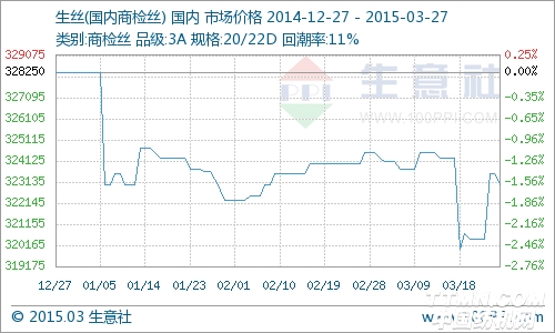 据生意社价格监测,本周(3.23-3.27))国内3A级商检生丝格走势窄幅震荡,周末均价32.3万元/吨,较周初32.045万元/吨相比,上涨0.80%。 本周嘉兴茧丝市场3A级商检生丝报价在30.4-33.5万元/吨左右,广西茧丝市场3A级商检生丝报价在32.09-32.7万元/吨左右。 上游干茧价格小幅上涨,周末均价9.69万元/吨,较周初均价9.675万元/吨相比,上涨0.16%;下游需求不如预期,政策面没有利好支撑,茧丝难有持续性反弹的动力,震荡走势仍是常态。据统计,浙江省缫丝企业累计利润额本月继续出现亏损,亏损面达65.52%,亏损额同比大幅下降;绢纺企业亏损额同比基本持平;织造企业累计利润额在连续10个月出现盈利后本月出现亏损,亏损额同比大幅下降;印染企业累计利润额同比大幅下降;服装企业累计利润额同比略有下降;其它企业累计利润额同比有所上升。 生意社纺织分析师预测,目前茧丝基本面市场变化不大,仍然保持弱势中窄幅震荡的态势,但随着新茧上市期的逐渐临近,茧丝供需状态将会有所改善,届时有望走出当前疲弱的行情。