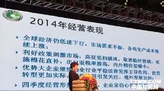 2015年3月28日,中国棉纺织行业协会第四届第六次理事扩大会暨金陵国际棉花棉纱论坛在南京召开,中棉行协会长朱北娜在会议上做《2015年中国棉纺织行业展望》主题演讲,主要内容如下:引言:2014年经营表现