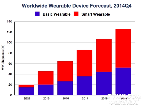 据国外媒体报道,根据研究机构IDC的预测,全球可穿戴设备2015年的出货量将达到4570万,而2019年的出货量将达到1.261亿,这意味着大约45%的年增长率。 IDC表示可穿戴设备的快速增长依赖于大量新厂商、新设备和终端用户的出现。智能可穿戴设备就是能够运行应用的可穿戴产品。这些设备包括苹果的Apple Watch、摩托罗拉360智能手表以及三星Galaxy Gear智能手表。 智能可穿戴设备2014年共售出约420万,但IDC预计今年的可穿戴设备出货量为2570万台。另外还有非智能类别的可穿戴设备,比如基本的健身追踪器,也就是没有运行应用程序的种类。IDC表示其销量将从2014年的1540万台增长到2015年的2000万台。 随着Apple Watch的发布,智能可穿戴设备将迎来重要的一年。Apple Watch点燃了可穿戴设备市场,许多厂商都渴望来分一杯羹。另外,非智能可穿戴设备并不会消失。事实上,该市场将持续增长,因为许多领域都需要简单的,一次性使用可穿戴设备。