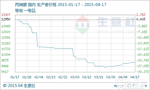 根据生意社价格监测,本周国内丙烯腈行情继续小幅上行,周涨幅1.55% ,目前国内主流工厂报价在9600-10200元/吨。科鲁尔丙烯腈装置10日晚停车检修至15日,故周内厂家供应偏紧,库存不足千吨;齐鲁石化下游腈纶装置负荷良好,厂家丙烯腈外销量亦所有减少,支撑厂家报价调涨。吉林石化计划5月3日停车检修1个月,同时带动东北厂家报价跟涨。 上游丙烯市场本周稳中小幅回落,由于原油价格持续小幅上涨,因此丙烯炼厂挺价意愿较强,价格也持续维稳,但目前丙烯炼厂库存压力持续上升以及下游的继续观望,预计工厂无力继续挺价,价格有小幅下滑。下游腈纶行业开工9成附近,市场供应稳定,纱厂采购按需跟进,腈纶厂家销售尚可,库存压力不大。 生意社分析师认为,目前山东和东北地区丙烯腈供应量有所减少,个别仍存推涨意向,同时下游需求面尚可,对市场形成一定利好,预计下周丙烯腈市场稳中偏强运行。