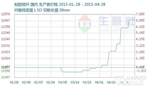 一.粘胶短纤价格走势 4月27日粘胶短纤商品指数为93.42,较昨日下降了0.11点,较周期内最高点100.94点(2013-11-27)下降了7.45%,较2015年03月19日最低点86.73点上涨了7.71%。(注:周期指2013-09-01至今) 二.市场分析 粘胶短纤市场订单充裕,后期价格维持坚挺态势。粘胶短纤市场价格保持平稳,1.5D*38mm粘胶短纤厂家报价上调至12200-12500元,市场商谈主流重心大多在12500元/吨,下游经过前期补仓,目前价位追高热情有所消退,部分较多备货已至6月初水平。粘胶厂则完成订单为主,心态平稳,局部报价仍有拉涨意愿。国内环锭纺30S人棉纱价格仍有拉涨,市场报价在18000-18800元/吨。部分面料商因原料价格变化太快,接单表现谨慎,但厂家普遍前期订单充裕,且拉涨意愿浓郁,价格执行依旧坚挺。 下游人棉纱近期出货情况相对较好,其中中粗织纱、涡流纺、紧赛高支纱等订单多较前期明显增多,局部出现供应偏紧态势,价格再次拉涨,福建产紧赛30S在19000-19500元/吨,受粘胶行情带动,纱厂仍有拉涨意愿。上游棉短绒市场交易行情偏弱,短丝级棉浆报价6100-6150元,实盘商谈重心仍在6100或偏低水平。 三.后市预测 粘胶短纤自3月中旬价格拉涨至今延续量价齐升态势,粘胶厂库存普遍在较低位。粘胶市场前期订单充裕,后期价格维持坚挺态势为主。