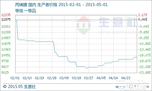 根据生意社价格监测,本周(4月27-5月1日)国内丙烯腈市场行情继续小幅上涨,周涨幅在1.14%,工厂继续上调报价,经销商货量不多,低价惜售,部分报价探涨,推动市场价格重心上移。由于月末下游主动性询价不多,丙烯腈交投一般,成交跟进迟缓。 本周上游丙烯市场触底反弹,价格涨势较凶猛。随着天津渤化PDH装置检修消息的传出,市场心态受到较大提振。同时下游皆有补库需求,采购积极性大幅回升。丙烯工厂出货好转,库存压力持续下降,涨价意愿逐步高涨,价格也出现持续反弹。下游腈纶开工良好,需求面存一定支撑,只月末市场买气偏淡,高价成交受阻。 生意社分析师认为,目前丙烯腈厂家库存普遍偏低,同时吉化装置5月全线停车检修,丙烯腈市场整体供应略紧。主要下游腈纶行业开工良好,对原料市场形成利好。另外,原料丙烯成本支撑延续。基本面利好,预计下周丙烯腈市场窄幅向好。