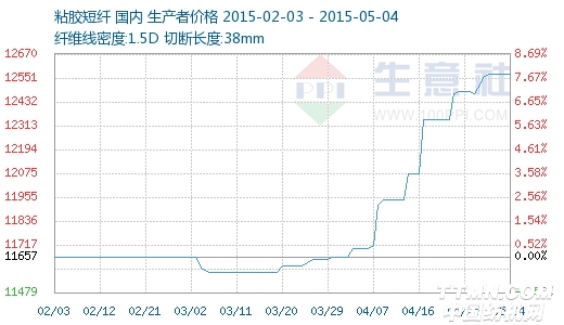 一.粘胶短纤价格走势 5月3日粘胶短纤商品指数为94.17,与昨日持平,较周期内最高点100.94点(2013-11-27)下降了6.71%,较2015年03月19日最低点86.73点上涨了8.58%。(注:周期指2013-09-01至今) 二.市场分析 今日,国内粘胶短纤行情总体暂稳,高端持续坚挺,中端商谈维持节前的12400-12500,高端上调至13000.商谈执行意向在12700-12800.其下游人棉纱市场受原材料上涨影响,整体行情平静,价格走势稳中偏弱状态,30s人棉纱报价总体维持节前17800-18800.目前,粘短厂家多执行前期订单,市场观望心态较浓。 三.后市预测 目前粘胶短纤市场受下游需求旺盛影响,市场备货较为积极。预计后市粘短价格将维持平稳,局部上调。