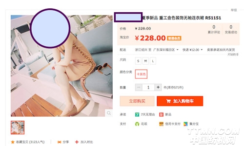 除了手袋,奢侈品牌的成衣在淘宝上同样也有假货。一件原价2.4万人民币左右的Lanvin连衣裙,在淘宝上只需要228元。