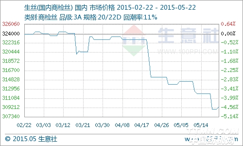 根据生意社价格监测显示,本周(5月18-22日)国内生丝市场行情呈小幅下跌态势,周跌幅在0.83%。走势略为疲软,交投面持续清淡,目前生丝(20/22D,3A)嘉兴地区价格在308000元/吨左右,广西地区价格在310800元/吨左右。 蚕茧面上,宜州市第三批蚕茧现已零星上市,预计大面积收购则在下周一。嘉兴市春蚕开始分批上簇,预计大批上簇将在5月23~24日。近期,下游观望情绪明显,而且受消费市场表现低迷影响,下方支撑力度不够。 生意社分析师认为,短期内生丝偏空的基调难改变,或以窄幅震荡为主。