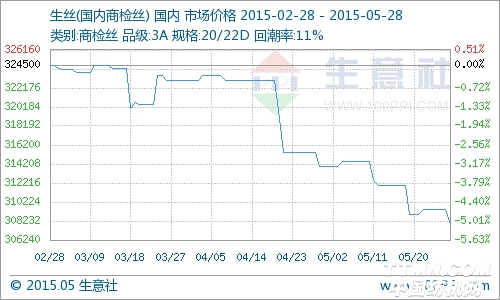 根据生意社价格监测显示,广西市场茧丝行情持续走淡,该地区干茧成交价格在10万/吨左右,生丝成交价格在30万—31万/吨左右。 广西各地春茧持续上市,由于质量原因大部地区蚕茧收购价格有小幅下降,目前主产区桂北宜州第三批春茧收购价格在34元—35元/公斤左右。 下游实际需求量无明显改观,交投热情继续下滑,市场整体行情依旧低迷,终端消费市场产品出货不畅,织造、加工生产企业按需采购。 生意社分析师认为,受市场销售压力持续影响拖累,茧丝上行受阻,预计短期继续维持震荡偏弱走势。