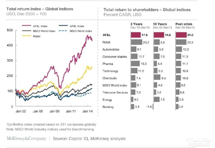 麦肯锡也在2014年底发布了一份关于时尚奢侈品行业的研究报告,报告显示,时装和奢侈品行业的业绩表现优于市场,超过高科技和通信等高增长行业。