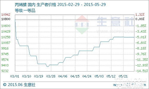 根据生意社价格监测显示,本周(5月25-29日)国内丙烯腈市场气氛偏弱,周跌幅 0.49%。商谈气氛清淡,后市预期偏空,工厂部分报价让利销售,价格重心有所下移。近期吉化装置年产45.2万吨的丙烯腈装置于5月4日停车检修,近日部分生产线计划重启,丙烯腈供应趋增。 临近月末,上游丙烯市场有小幅回落,高端成交较少。下游心态观望,多无主动询价,腈纶市场高位运行,厂家产销平稳,个别品种如棉型短纤供应偏紧。 生意社分析师认为,吉化丙烯腈装置近期计划重启,而其他工厂暂无检修计划,丙烯腈供应稳中趋增。并且下游部分腈纶装置存停车检修计划,需求面难有更好表现,市场供需预期偏弱,看空情绪较浓,预计短期丙烯腈价格弱势下行为主。