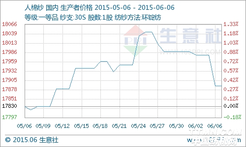 生意社: 人棉纱稳中走弱 下游接盘谨慎 (5.30-6.06)