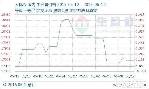 据生意社数据监测显示:本周人棉纱受上游粘短持续挺价影响,部分厂家报价小幅上涨。其中30s人棉纱价格17900元/吨,较上周上调0.07%。