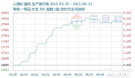 一.人棉纱价格走势 6月22日人棉纱商品指数为87.56,与昨日持平,较周期内最高点101.14点(2013-03-07)下降了13.43%,较2014年11月26日最低点79.84点上涨了9.67%。(注:周期指2012-09-30至今) 二.市场分析 6月23日,国内人棉纱延续弱势,淡季特征明显,市场上环锭纺走货偏弱,赛络纺表现一般。现环锭纺30s现金报价为17600-18200元/吨。绍兴赛络纺40s商谈重心20500元/吨或略低,部分较低商谈跌破20000元/吨。上游粘胶短纤价格延续平稳运行,高端因赛得利收购龙达进入最后阶段,高端价格坚挺12800元/吨。中端价格高低不一,主流维持12400-12500元/吨,部分因自身装置限产,较高执行12700元/吨。 三.后市预测 人棉纱市场表现清淡,多以小量为主。因上游粘短报价持续坚挺以及下游纱厂行情偏弱,预计后市价格大稳小动。