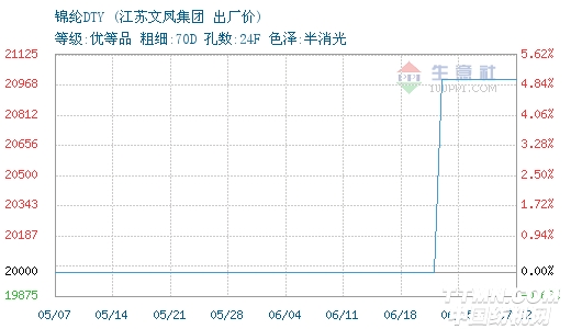 07月02日江苏文凤集团关于锦纶DTY的报价为21000元/吨。锦纶DTY的出产地为江苏南通;仓储地为海安县;锦纶DTY的属性:等级:优等品;粗细:70D;孔数:24F;色泽:半消光。该报价有效期为3天。
