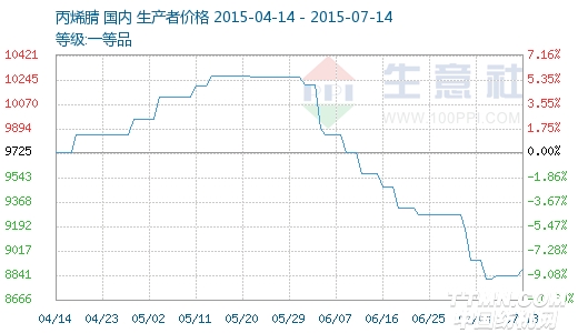 7月6日-7月10日,国内丙烯腈市场平稳运行,出厂价格弱势盘整,主力产家报价基本在8800-9000元/吨。 丙烯腈价格近期走势处于下跌状态,厂家成本压力愈发凸显,利润空间曾一度不足两千元,稳价提价意图强烈,而下游工厂,不少企业已经开始抄底备货,使得丙烯腈价格止住下跌势头,略微有小幅度的上涨。 丙烯腈上游原料,原油大跌,在60美元震荡徘徊,同时丙烯价格弱势下降,产量充足,使得丙烯腈供应充足,虽然丙烯腈厂家检修不断,但近来新增的产能和居高不下的开工率,使得市场上丙烯腈呈现供大于求的局面,厂家处于被动地位。 生意社分析师认为,目前丙烯腈厂家挺价意图强烈,并开始限产减产,抚顺石化在七月还有装置检修计划,以此缓解供求矛盾,但不可避免的是,厂家出货阻力大,下游市场气氛清淡,成交一般,厂家必然根据实时情况调整出货策略,预计七月价格走势稳中偏强,会有小幅度的上升曲线。