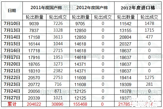 7月27日储备棉轮出数量为51842.4154吨,实际成交1020.5344吨,成交比例1.97%。参与涉及竞买成功的企业共计4家。据中国棉花信息网统计,截至7月27日储备棉轮出累计成交36121.6218吨,成交比例6.25%。