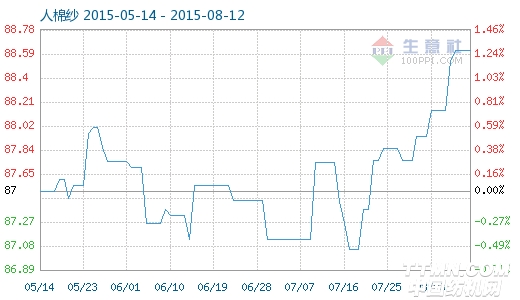 一.人棉纱价格走势 8月12日人棉纱商品指数为88.63,与上一日持平,较周期内最高点101.14点(2013-03-07)下降了12.37%,较2014年11月26日最低点79.84点上涨了11.01%。(注:周期指2012-09-30至今) 二.市场分析 国内人棉纱市场价格平稳,主流生产厂商30S人棉纱报价17000-18800元/吨,价格分化较大,但成交重心基本维持在18000元/吨左右,说明人棉纱市场价格较前期拉涨后有所回落。 上游粘胶短纤市场价格渐稳,交投气氛一般,下游延续刚需补货,粘胶厂完成前期订单为主。人民币贬值后,或促进出口订单。下游由于纺织行业传统淡季影响,销售情况清淡,纱厂报价在原料坚持下稳中僵持为主。 三.后市预测 生意社分析师认为人棉纱价格大致平稳,销售行情表现尚可,交投气氛良好。预计后市人棉纱有小步调整的趋势。