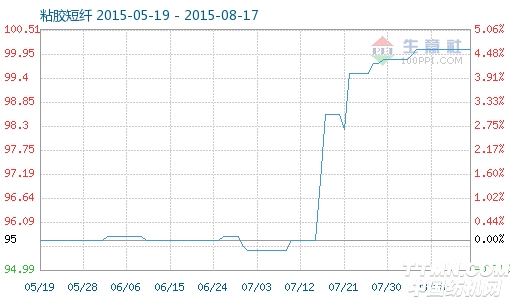 8月17日粘胶短纤商品指数为100.05,与上一日持平,较周期内最高点100.94点(2013-11-27)下降了0.88%,较2015年03月19日最低点86.73点上涨了15.36%。(注:周期指2013-09-01至今)