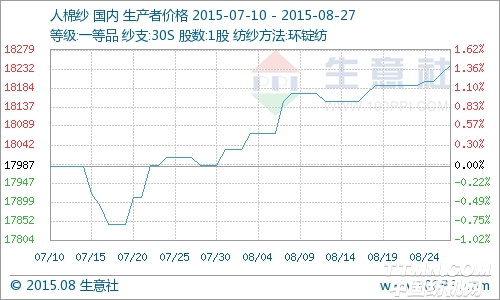 一.人棉纱价格走势 据生意社数据监测显示:本周人棉纱价格上涨,其中30s主流规格人棉纱价格18240元/吨,较周初上调0.39%。 二.市场分析 国内人棉纱市场价格小幅上涨,主流生产厂商30S人棉纱报价17400-18900元/吨,价格差距较大,但成交重心上提至18200元/吨左右维稳,说明人棉纱市场价格较前期僵持后试探性拉涨。 上游粘胶短纤市场大致平稳,高端价格坚挺。粘胶短纤市场商谈重心仍有小幅上移,基本维持在13700元/吨。据获悉,后期有望冲击14000元/吨。下游由于纺织行业走出淡季,销售情况有所好转,纱厂报价在原料坚持下有进一步拉涨可能。 三.后市预测 生意社分析师认为人棉纱价格小幅上调,销售行情表现尚可,受粘胶短纤上涨影响,预计后市人棉纱会有进一步拉涨的趋势,关注后期签单变化。