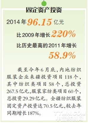 2014年7月,新疆部署发展纺织服装产业带动就业工作。新疆计划通过发展纺织服装产业力争到2023年解决100万人就业。