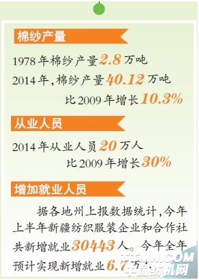 《发展纺织服装产业带动就业2015年行动方案》,自治区与各地州市签订了2015年纺织服装产业目标责任书,将年度目标和任务分解到各地州市。看看这些数据,你能了解新疆纺织服装发展的速度。