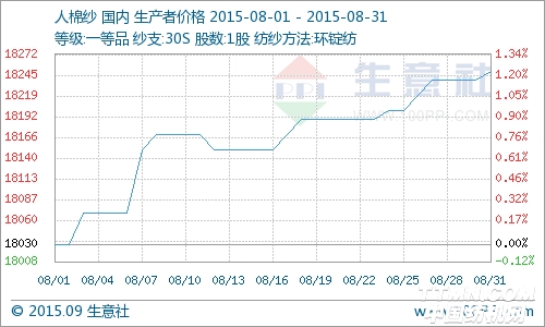 一.人棉纱价格走势 据生意社数据监测显示,8月国内人棉纱市场价格总体上涨态势,当前价格是18250元/吨,较月初18030元/吨,上涨1.22%;8月上旬整体涨速加快,短短10天时间上涨0.78%,从8月中旬开始涨势有所放缓,开始进入震荡期,从8月下旬开始,价格震荡上行。 二.市场分析 国内主流生产厂商月初30s人棉纱报价17000-18800元/吨,月末报17500-18900元/吨,最低价差500元/吨,分化较大,但人棉纱月底成交重心在18200元/吨左右暂稳。8月行业整体态势供大于求,成交量一般,开工率较低,多以销库存为主,但个别品种较突出,10s市场较为动销。 上游粘胶短纤8月市场涨势较快,月末中端主流报价多在13700-13800元/吨,高端较高报14000元/吨。厂家因库存偏低,且仍有前期订单未完成,对于新价格执行相对表现坚挺,造成粘胶短纤市场商谈重心整体上移,部分厂家开始有13950元/吨的实单成交。下游由于纺织行业走出淡季,销售情况有所好转,纱厂报价在原料坚持下有进一步拉涨可能。 三.后市预测 生意社分析师认为粘短供应整体偏紧继续支撑其价格坚挺,成本压力存在,纱价亦难下滑,但下游订单启动缓慢,对于人棉纱买盘压价,会制约人棉纱重心提升。预计后市人棉纱主流价格在原料上涨的压力下,缓慢跟进上扬。