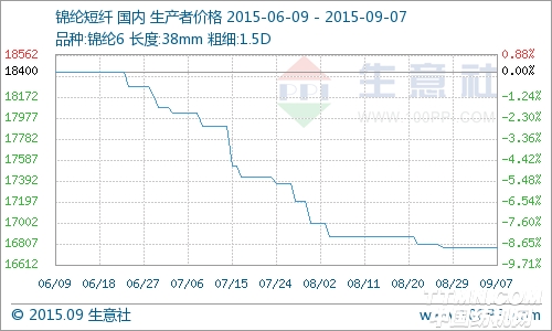 据生意社价格监测显示,9月7日,国内锦纶短纤市场价格走势趋稳,国内主流生产厂商1.5D*38mm短纤报价16000-17000元/吨,价格分化较大,但成交重心保持不变。 上游己内酰胺场价格成交重心上移,市场交易氛围一般,主流价格在10700-10800 元/吨;下游锦纶纱由于纺织行业传统淡季影响,销售情况一般,对原料采购谨慎。 据生意社分析师认为,受原料市场及下游影响,价格推涨仍有较大难度,目前上游市场价格回落,市场交易情绪一般,厂家开工较稳,短期内价格盘整为主。