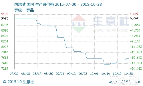 根据生意社价格监测显示,截止到10月28日,国内丙烯腈市场稳中向好,目前市场主流商家报价在7500-7900元/吨之间,较10月初价格持平。至收盘,中石化华东销售分公司丙烯腈出厂报价7900元/吨,本月结算7700元/吨;齐鲁石化丙烯腈现货报价至7600元/吨,本月结算7500元/吨;抚顺石化丙烯腈现货报价7350元/吨,装置开工9成附近。目前丙烯腈厂家开工正常,整体负荷良好,但库存普遍偏低。 丙烯腈领域上游丙烯市场以横盘整理为主,整体处于低位运行。从供需层面分析,国内丙烯工厂装置运行正常,走货顺畅。近期山东烟台万华丙烯产品投市,对市场已有的供应面产生一定的压力。目前华东地区丙烯主流报价在4700元/吨左右。 下游腈纶市场月末结算再次跳水,市场利空气氛有所释放,但需求支撑不足,且月末买盘多谨慎观望,腈纶交投不多,成交气氛一般,行业开工有所下降。至收盘,华东地区1.5D腈纶短纤参考12700-13300元/吨。 生意社分析师汪文煜认为虽然丙烯腈厂商库存普遍偏低,短期内走势向好,但下游采购按需,整体市场商谈气氛一般,加之多家腈纶生产商计划降负运行,需求面支撑不足,预计11月初市场成交重心会有所回落。