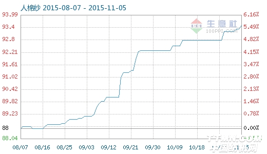一.人棉纱价格走势 11月5日人棉纱商品指数为93.50,较上一日上升了0.17点,较周期内最高点101.14点(2013-03-07)下降了7.55%,较2014年11月26日最低点79.84点上涨了17.11%。(注:周期指2012-09-30至今) 二.市场分析 国内人棉纱环锭纺30S成交尚可,价格方面高端厂家偶有小幅提价,而R45S、R60S成交有所放缓。沛县R40S自络机织承兑出厂报盘集中在20600-21000元/吨,预计商谈20200-20700元/吨,R30S承兑商谈19000元/吨;福建长乐R30S自络针织现汇短送报盘集中在18700-18800元/吨,R40报19700-19800元/吨;高密地区R30S自络两用现款出厂商谈17800-18000元/吨;萧绍R30S现汇出厂商谈集中在18500-18600元/吨。国内R40S现汇商谈集中在20300-20400元/吨,R60S在24300-24500元/吨。 上游粘胶短纤市场价格大致平稳,主流大厂维稳意愿较强。粘胶短纤主流大厂维稳意愿较强,认为行业库存仍处较低,且有超签订单支撑,市场没必要过分恐慌,主流大厂价格执行多维持坚挺运行。中端市场商谈维持在14500-14600元,下游多偏高成交仍有明显抵触。高端商谈成交在14700-14800元/吨。人棉纱采购维持缩量刚需为主。 三.后市预测 生意社分析师认为粘胶短纤价格稳定,人棉纱维持刚需补货,预计后期价格走平,关注人棉纱后期签单情况。