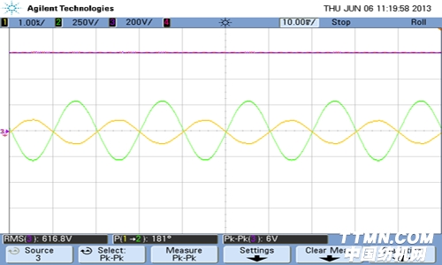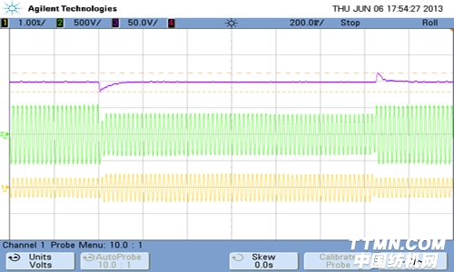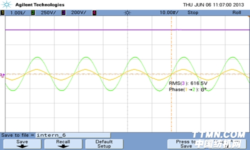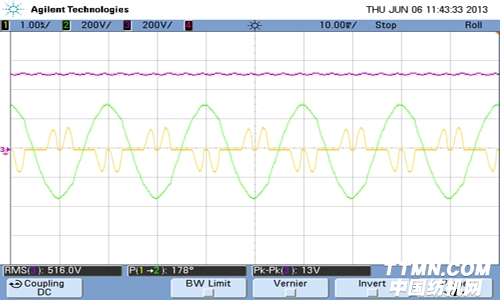 1) 电源端电流畸变率满足GB/Z 17625.6-2003标准要求。减少对公共电网的谐波污染,实现真正绿色能源普通变频器波形