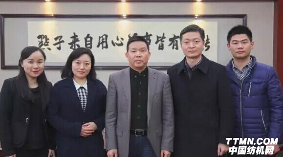 【中国纺机网采编团队与天门纺机董事长沈方勇(中)】