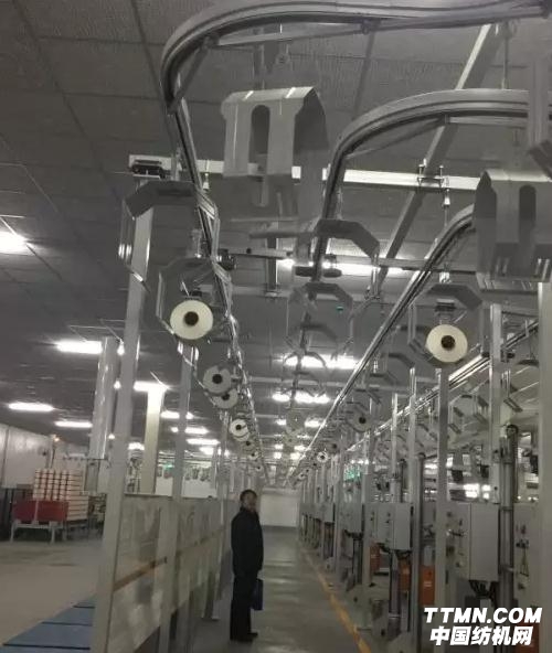 青岛环球集团股份有限公司研发的“HTBW-01筒纱智能包装物流系统”包含筒纱自动输送、自动堆垛、筒纱编织袋自动包装、筒纱热缩膜自动包装等九个功能模块,是国内首套无人化筒纱智能包装物流系统。经多个用户连续运转使用,特别是在山东华兴纺织集团“智能纺”五万锭生产线的使用,达到了智能工厂的要求。该系统自动化程度高、运行稳定可靠,在减少用工、提高生产效率,降低工人劳动强度等方面效果显著。