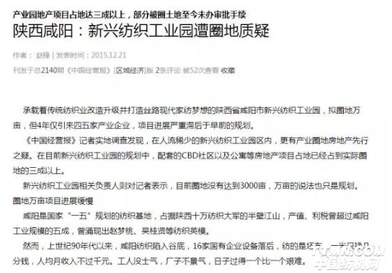《人民日报》也没闲着,报道咸阳纺织工业园由于没有产业链支撑,陷入融资招商困局。
