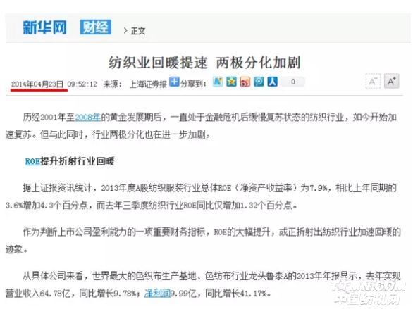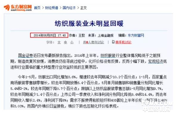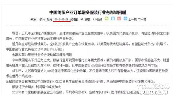 最近几年,纺织服装行业不景气是事实,然而对于这段寒冬什么时候能走完,大家各有各的观点,也因此各家报道差异较大,你的观点、他的观点,当我们把这些放在一起就能发现,没有一家可信的!