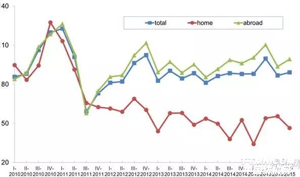 主要由于出口海外市场的驱动,2015年 4 季度意大利纺机行业的订单指数呈增长趋势。根据ACIMIT的统计,2015年10 — 12月,纺机制造商的接单量同比增加 2%,同期订单指数为89.1 (按2010年基数=100计算)。