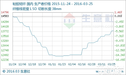 一.粘胶短纤价格走势 据生意社价格监测:本周粘胶短纤价格继续延续强势行情,中端1.5D价格执行13800元/吨,较上周涨幅达1.56%,高端1.2D价格执行13800元/吨,较上周涨幅达2.12%。 二.市场分析 本周粘胶短纤刚需交投,近期厂家多反馈下游新单采购节奏有所放缓,新签单产销呈现趋弱态势。但粘胶厂依旧普遍超签,心态延续谨慎乐观。价格方面保持平稳,高端散单在14000元/吨,个别较低有13900元/吨,中端在13700元/吨上下,部分较低成交在13500-13600元/吨。本周粘胶行业开工率上升至92%,库存天数依旧为零,产销率高达100%。 下游高密地区梭织人棉走货较好,维持老客户订单下货源依旧供不应求,价格方面适度跟进,长乐针织人棉前期涨势过快,近期实单跟进有限而价稳整理。截止收盘,长乐R40S(针织)现汇商谈20000-20200元/吨,R30S商谈19000-19200元/吨;沛县R40S(喷气)现汇商谈20000元/吨;高密R30S(剑杆)现汇出厂商谈18000元/吨,R60S在23800-24000元/吨,R45S在20300-20400元/吨;萧绍R30S(针织)现汇短送商谈18500元/吨。 三.后市预测 生意社分析师认为,粘胶短纤部分企业订单可排至4月中旬,即便近期涨势放缓,但行业超签订单支撑下,价格仍旧保持坚挺。关注后期粘胶短纤产能及签单情况。