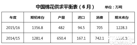 6月,国内棉花价格持续上涨,纺织品服装出口订单再度出现下滑,进口纱采购意愿有所增长,纺织企业预期转差,加之化纤对棉花替代作用逐步增强,用棉比有所下降,棉花需求量预计较前期预测减少。据中国棉花协会预计,本年度消费量705万吨,较上期下调7万吨,同比减少37万吨。