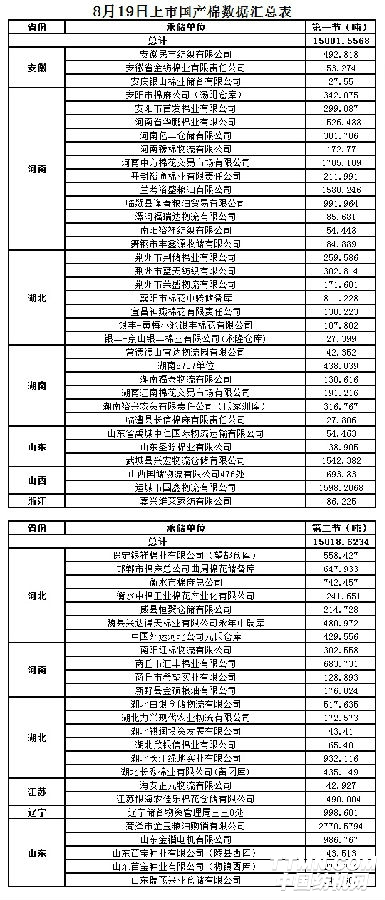 8月19日两节共计轮出储备棉30020.1802吨。8月19日第一节销售储备棉15001.5568吨,其中国产棉15001.5568吨、进口棉0吨。第二节销售储备棉15018.6234吨,其中国产棉15018.6234吨、进口棉0吨。