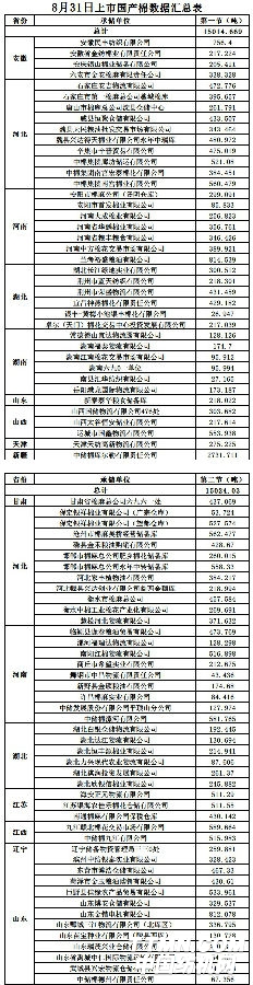 8月31日两节共计轮出储备棉30038.6990吨。8月31日第一节销售储备棉15014.6690吨,其中国产棉15014.6690吨、进口棉0吨。8月31日第二节销售储备棉15024.0300吨,其中国产棉15024.0300吨、进口棉0吨。