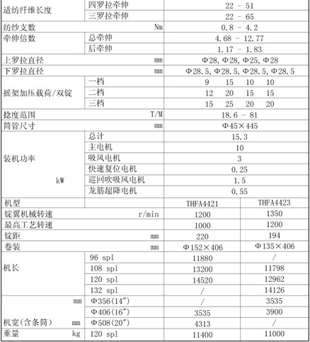 我厂生产的悬锭系列锭翼的卷装尺寸有四种:Φ130×320(适用于FA402B型粗纱机);Φ130×400(适用于FA457型粗纱机);Φ135×400(适用于FA423、FA426、FA493、ASFA411型粗纱机);Φ150×400(适用于FA401A、FA415A、FA421、FA422、FA431、FA458A、FA481、HY491、DTM488、EJK211型粗纱机)。粗纱通道为特制高精度不锈钢管,保证锭翼在初次上机时不需进行任何通道处理,采用立式双面动平衡机,以去重法校验锭翼,动平衡精度高,高速运转时粗纱机振动小、噪声低。