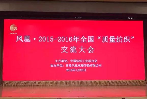 为了进一步加快纺织行业向质量效益方向转型,在全行业内塑造重视质量、提高质量的整体形象。2016年1月20日,凤凰·2015-2016年全国“质量纺织”交流大会在青岛市召开。本次大会主题为“提升质量,追...