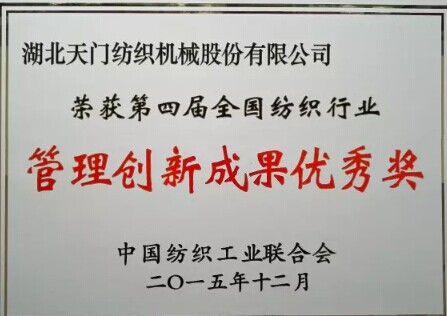 由中国纺织工业联合会主办,中国纺织工业企业管理协会(中国纺织企业家联合会)承办的“第四届全国纺织行业管理创新成果奖”终审会上,天门纺织机械股份有限公司被授予“全国纺织行业管理创新成果奖管理大奖优秀奖”...