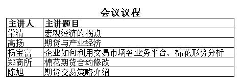 各涉棉企业及个人: 生意社11月24日讯 为了提高企业规避风险的能力、拓宽经营及投资渠道全国棉花交易市场与郑州商品交易所于年12月10日共同主办“全国棉花交易市场业务介绍、棉花期货合约修改及棉花形势...